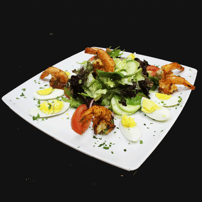 Lettuce, tomatoe, cucumber, onion and Mix Green, shrimp and boiled eggs